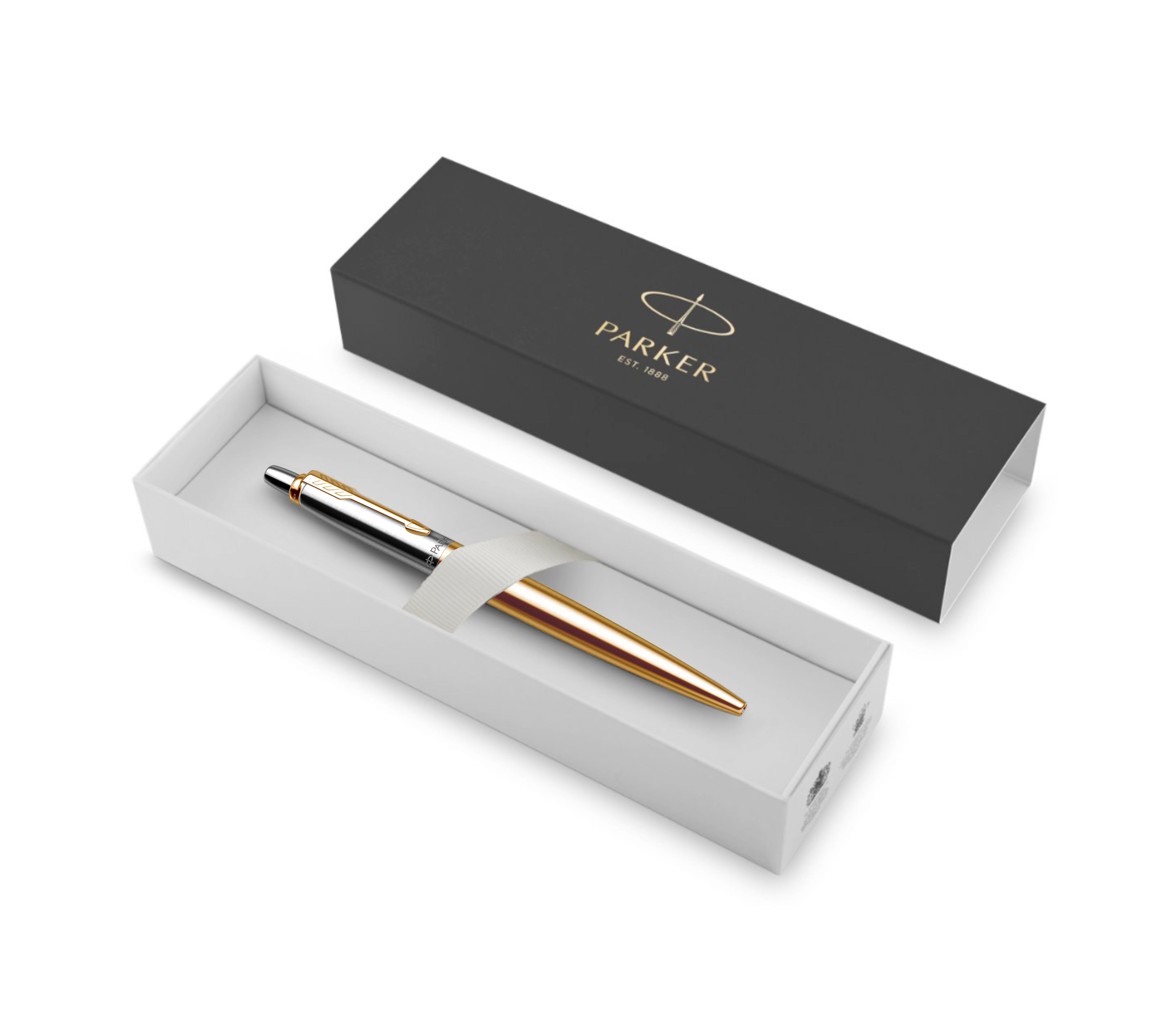 Ручка шариковая Parker Jotter Gold Stainless Steel GT от официального дилера Parker в Щелкове. Вы можете дополнительно заказать гравировку, которая подчеркнет Вашу оригинальность и придаст памятность статусному подарку. Все ручки Паркер поставляются в фирменном футляре.