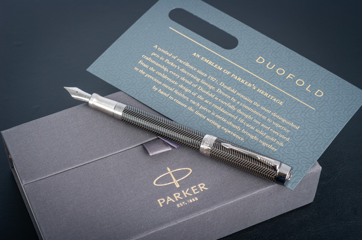 Перьевая ручка Parker Duofold Prestige Centennial Black Chevron CT от официального дилера Parker в Щелкове. Вы можете дополнительно заказать гравировку, которая подчеркнет Вашу оригинальность и придаст памятность статусному подарку. Все ручки Паркер поставляются в фирменном футляре.