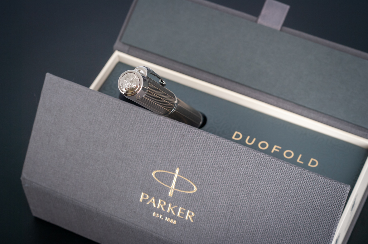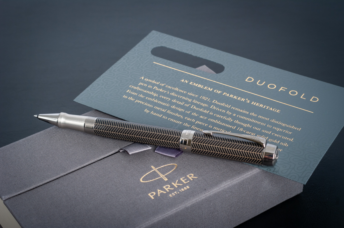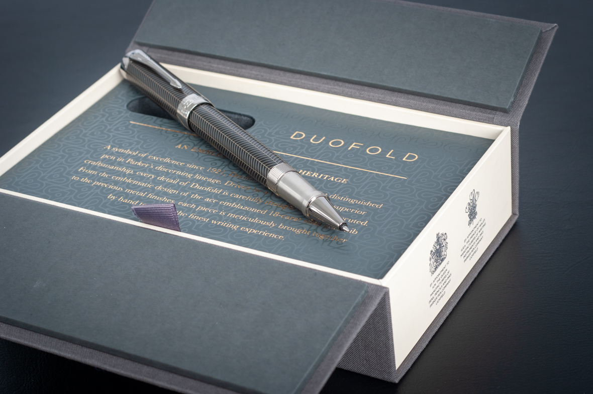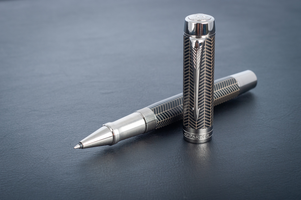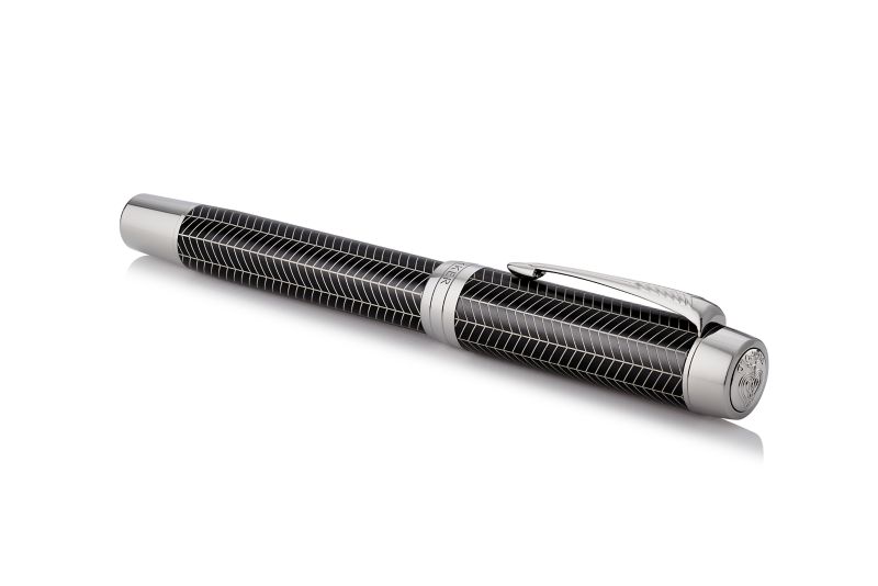 Ручка роллер Parker Duofold Prestige Centennial Black Chevron CT от официального дилера Parker в Щелкове. Вы можете дополнительно заказать гравировку, которая подчеркнет Вашу оригинальность и придаст памятность статусному подарку. Все ручки Паркер поставляются в фирменном футляре.